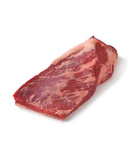 Lean cut, moderately tough, low-fat marbling, requires moist cooking